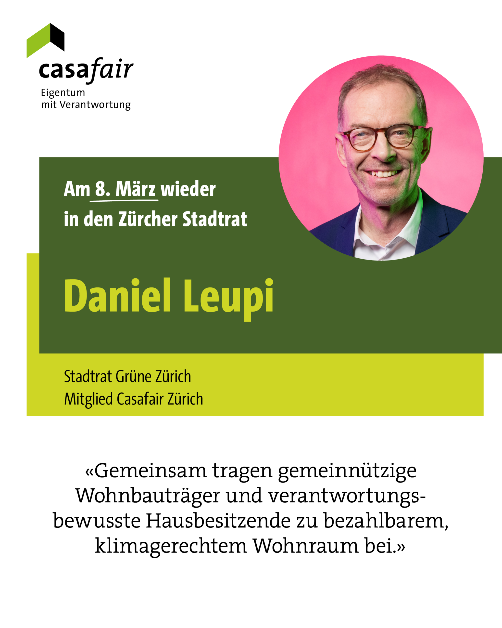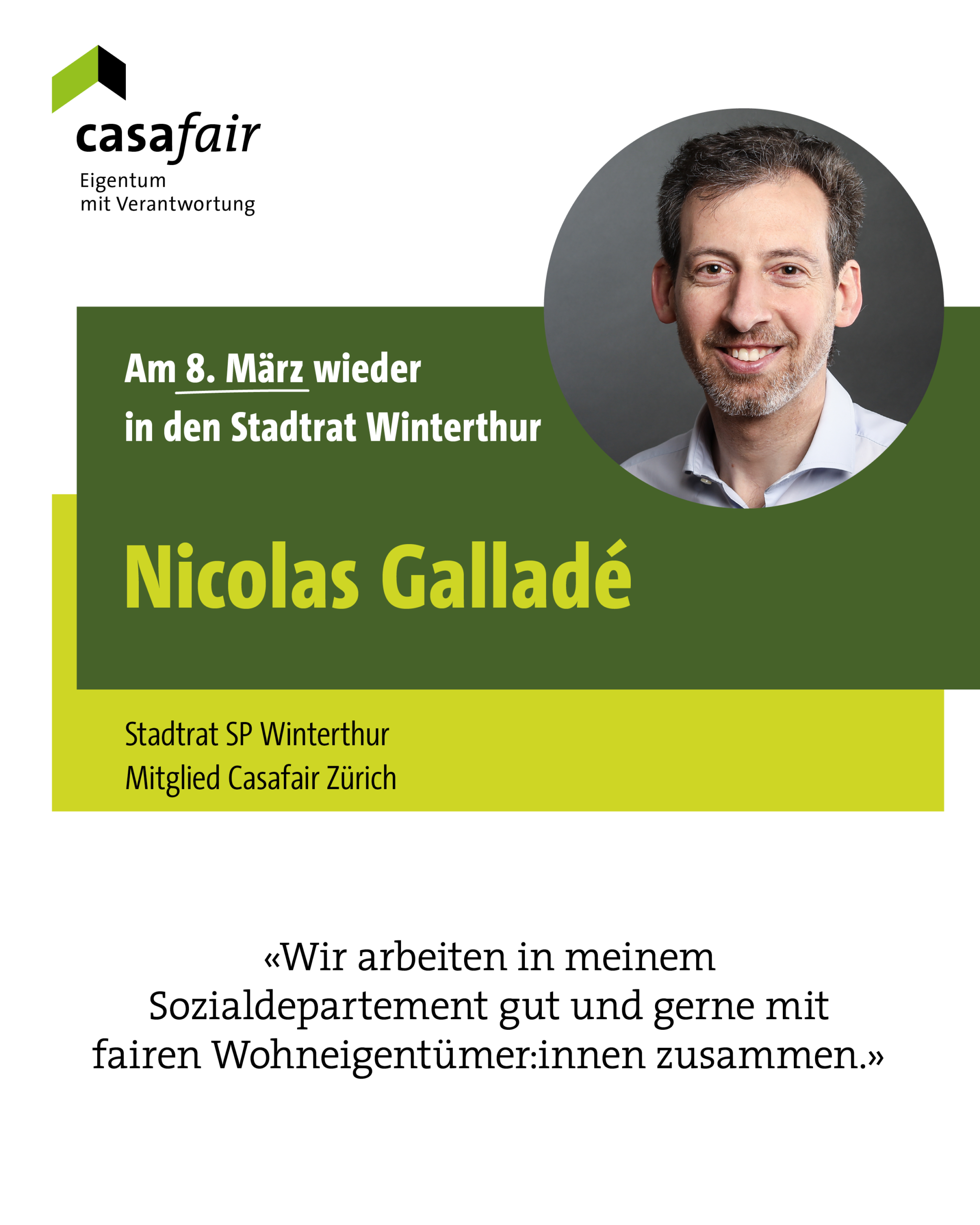 Für die kommunalen Wahlen im Kanton Zürich am 8. März und 12. April 2026 im Kanton Zürich unterstützt die Sektion Zürich Mitglieder, die bei den Erneuerungswahlen 2026 der Gemeindebehörden im Kanton Zürich für ein Exekutivamt kandidieren. Eine Liste der Kandidat*innen finden Sie unter casafair-zuerich.ch .