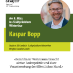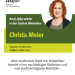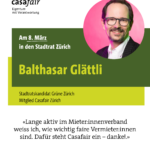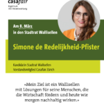 Für die kommunalen Wahlen im Kanton Zürich am 8. März und 12. April 2026 im Kanton Zürich unterstützt die Sektion Zürich Mitglieder, die bei den Erneuerungswahlen 2026 der Gemeindebehörden im Kanton Zürich für ein Exekutivamt kandidieren. Die Kandidat*innen finden Sie unter casafair-zuerich.ch .